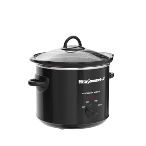 Elite Gourmet MST-350B Electric Slow Cooker, Adjustable Temp, Entrees, Sauces, Stews & Dips, Dishwasher Safe Glass Lid & Crock (3 Quart, Black)
