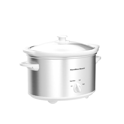 Hamilton Beach 4-Quart Slow Cooker with 3 Cooking Settings, Dishwasher-Safe Stoneware Crock & Glass Lid, Stainless Steel (33140G)