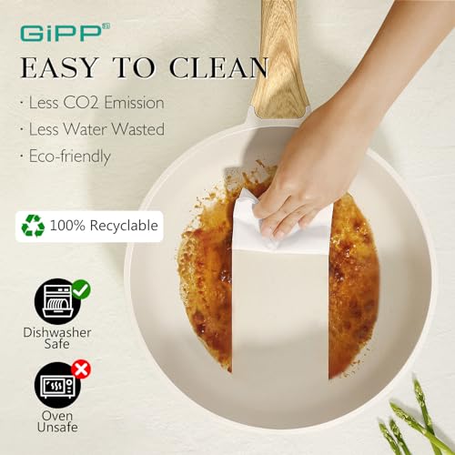 GiPP Nonstick Frying Pan Skillet – 9.5″ White Granite Non Stick Pans, Omelette Pan with Heat-Resistant Handle, Compatible with All Stovetops, PFOA Free