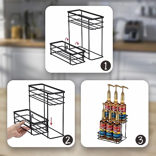 Coffee Syrup Organizer Rack, (6 Bottle Capacity),2 Tier Coffee Syrup holder for Coffee Bar Accessories,Kitchen,Storage for Syrup, Wine, Dressing(Black)